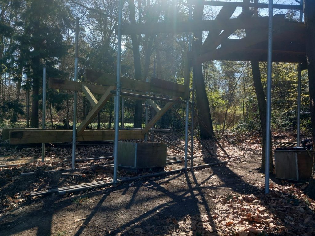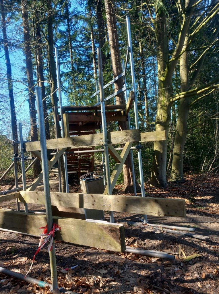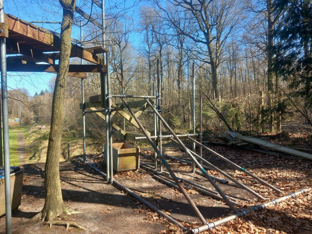 Nach der mutwilligen Zerstörung der Startrampe und der Bewilligung von Fördergelder hat die Sanierung begonnen. Zunächst wurden alle Holzteile entfernt. Danach folgte ein neuer Aufbau durch ein neues Stahlrohrgerüst. Dieses Gerüst soll stabile Basis für die Startrampe sein. Nun folgen die Holz-Arbeiten. Danke an die Matrial-Spender.