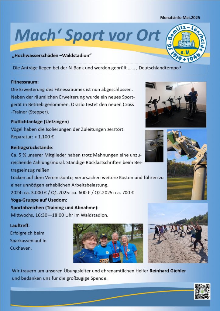 Mai 2025 Kommentar verfassen / News / Erhard Lühmann Mai 2025 Weiterlesen »Fitnessraum, Hochwasserschaden, Lauftreff