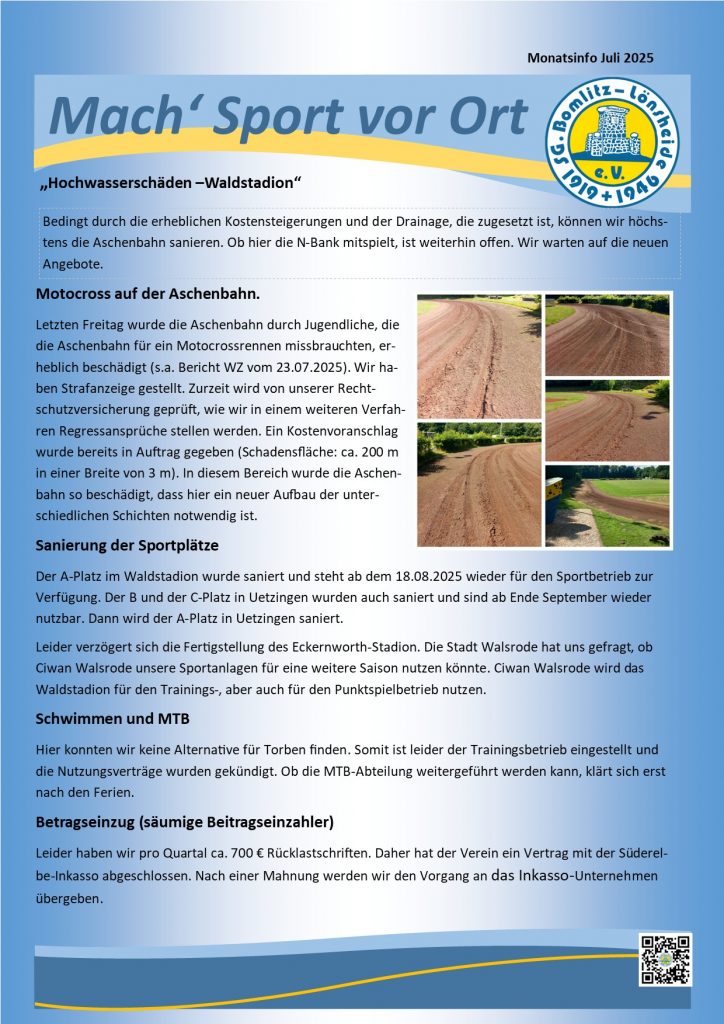 Juli 2025 Kommentar verfassen / News / Erhard Lühmann Juli 2025 Weiterlesen »Aschenbahn, Sportplatzsanierung, Vandalismus